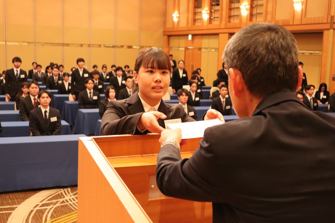 10月2日に、2024年4月入社予定の学生を対象としたあなぶきグループ合同内定式が高松国際ホテルで開催されました。あなぶきグループ全体の内定者は124名で、当社からは15名の内定者が参加しました。