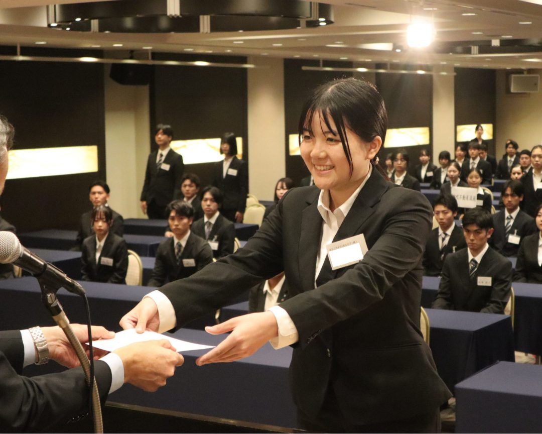 式典では、各社代表者より代表者に内定通知書が授与され、来春4月入社に向けて気持ちを新たにしていただきました。