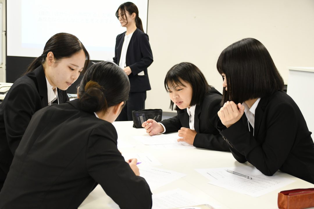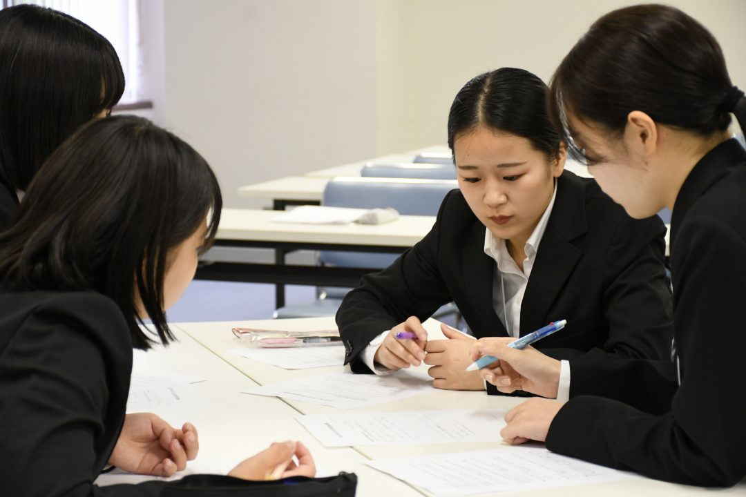 実際の場面を想定したロールプレイを交えながら、接遇マナーについて学びました。