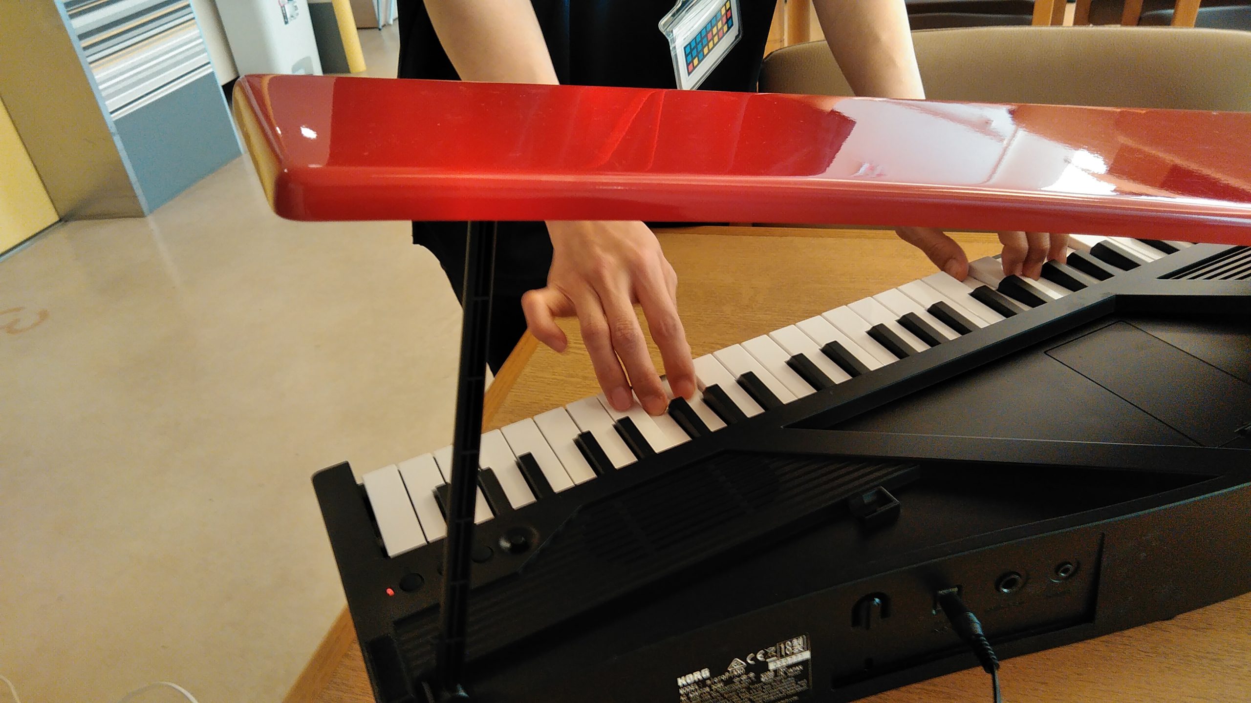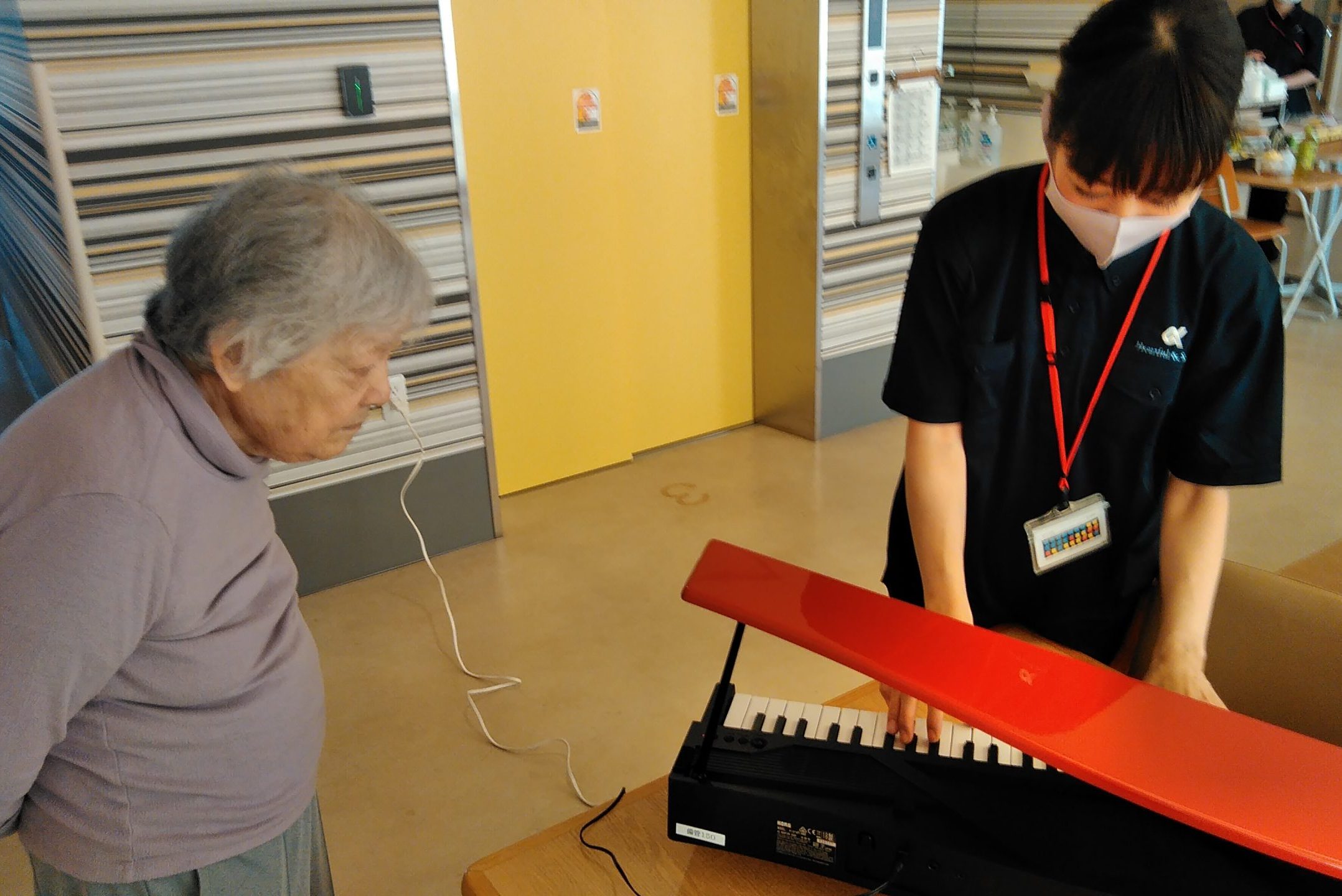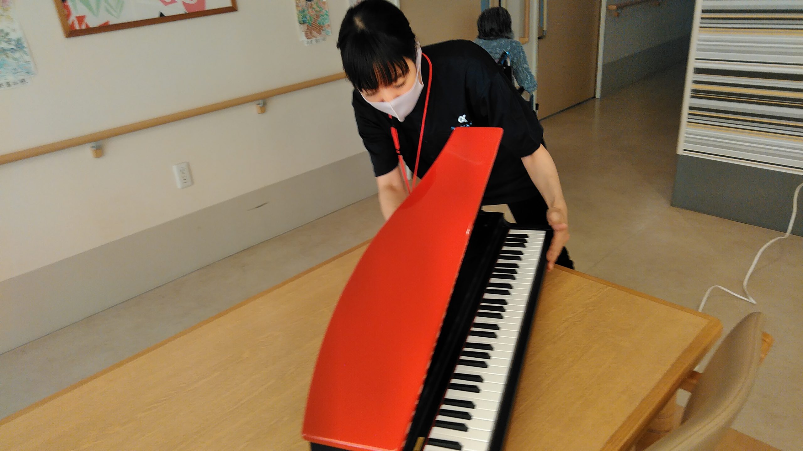 ホームでのレクリエーション終わりに、計画作成担当者のやまぐちさんから「ピアノとか楽器はありますか?レクリエーションの時に音楽療法みたいにできると喜ばれるかと思うんです。」と相談がありました。