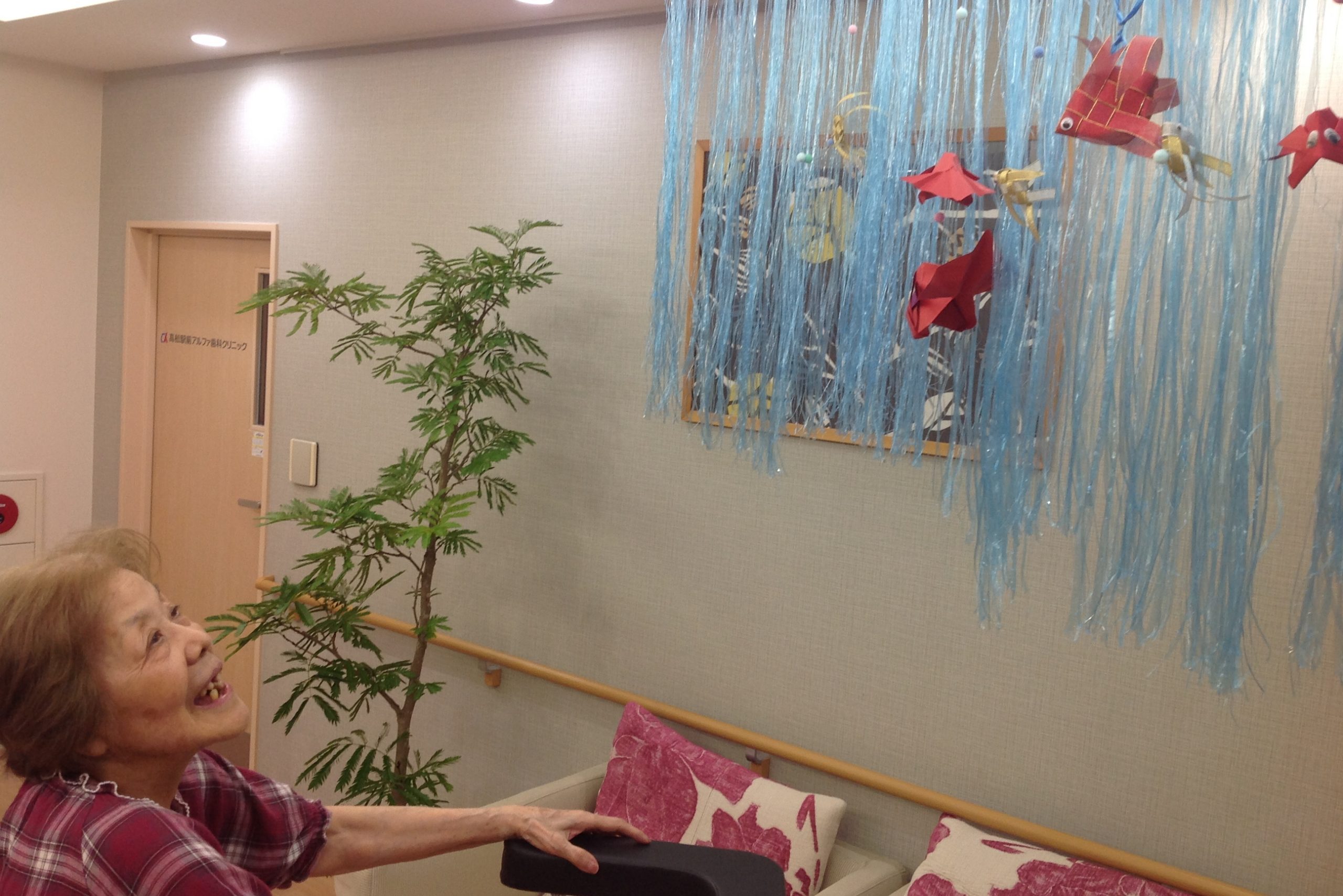 現在、アルファリビング高松駅前の正面玄関は、ご面会にこられたご家族からも「生き物がいるだけで癒されますね。」と、好評です。