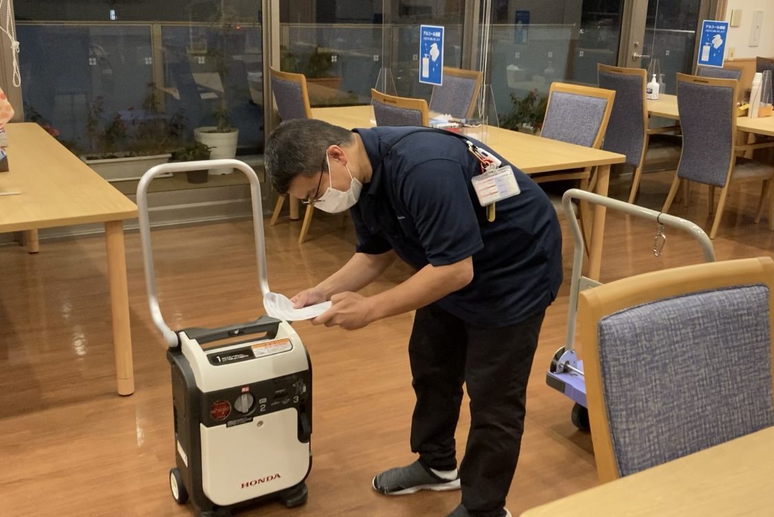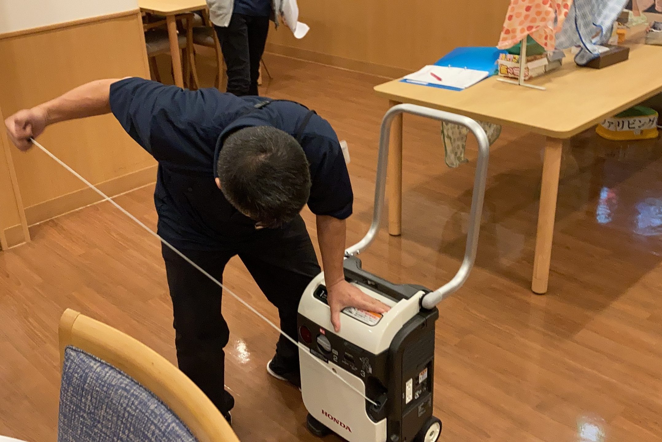アルファリビング高松駅前では、今後起こりうる災害に備えて、ホームに備品管理している発電機の試験運転を行いました。
