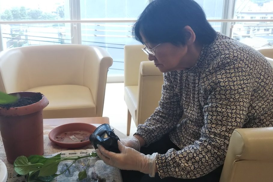 つい先程まで不安げなご様子や、ソワソワされていたご様子だったご入居者が見違えるように活き活きとされており、身近な自然に関わることのパワーを実感ですることができました。