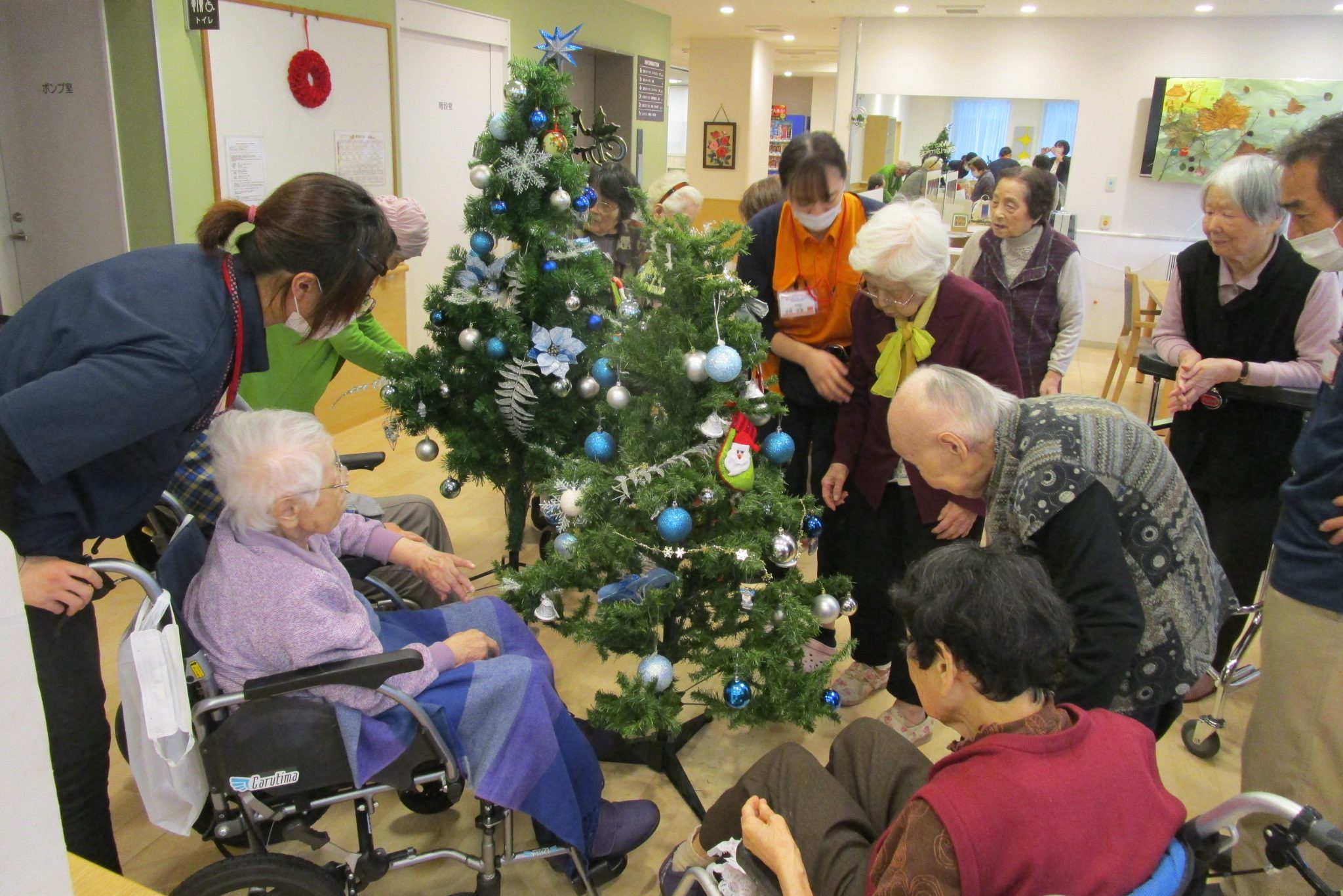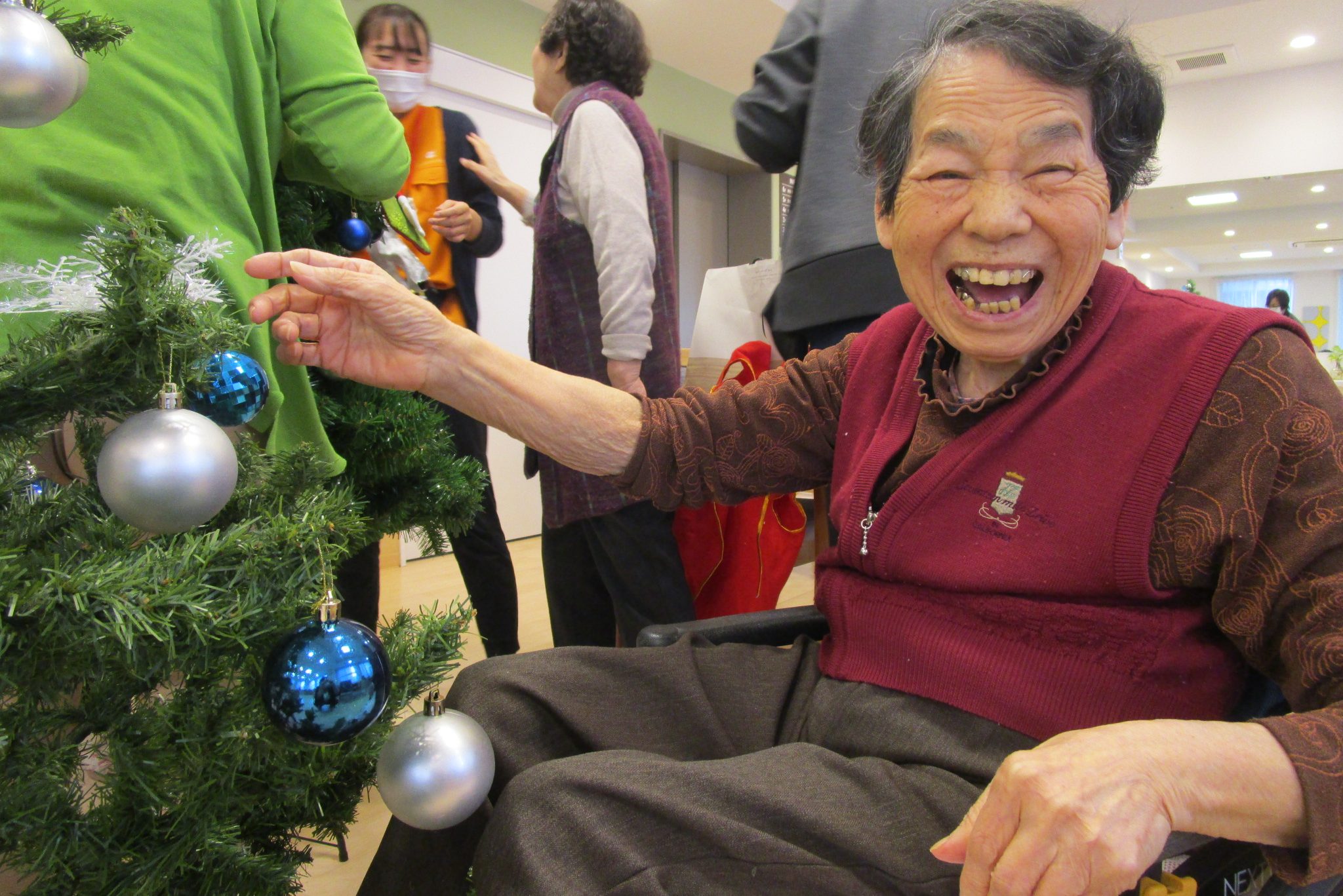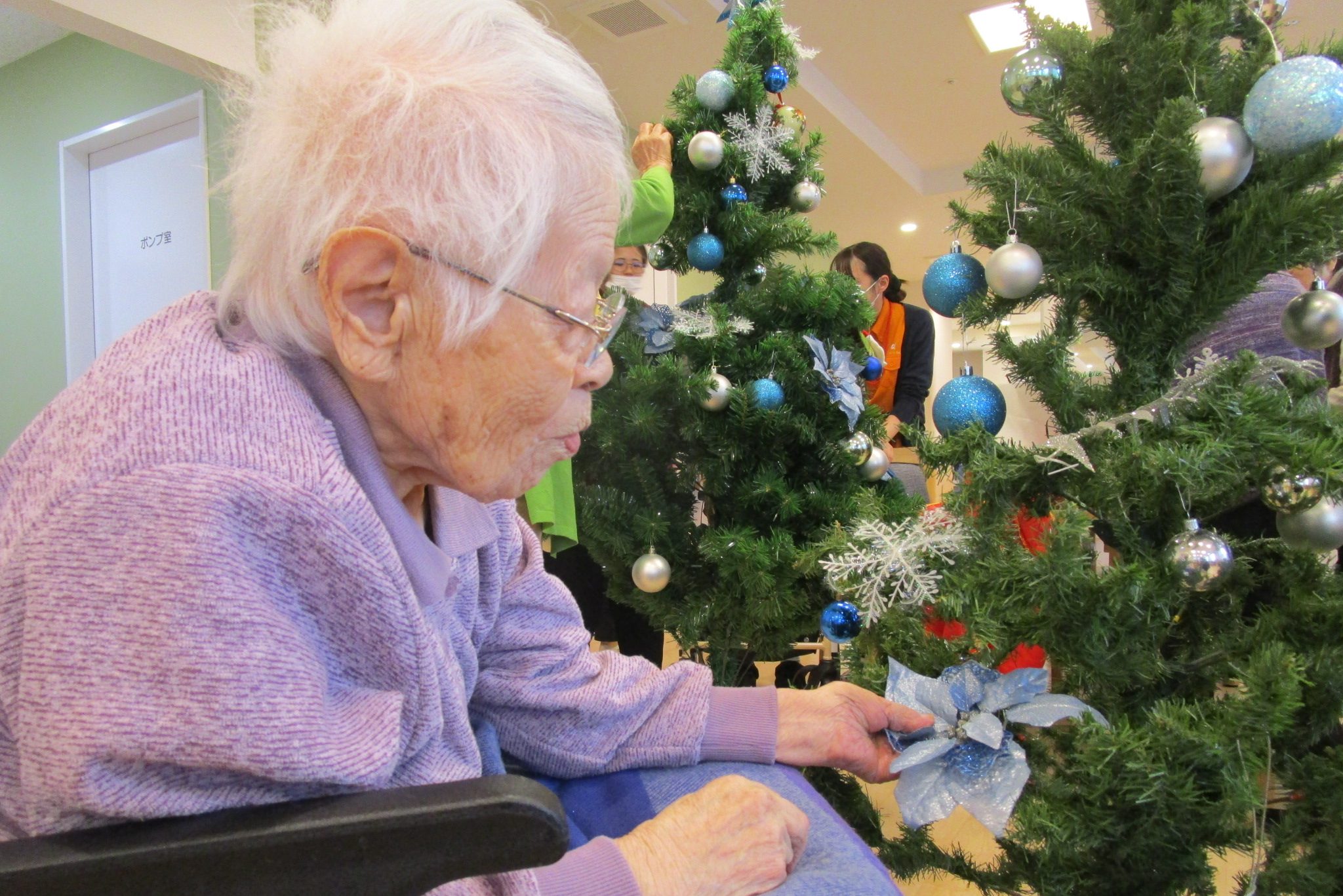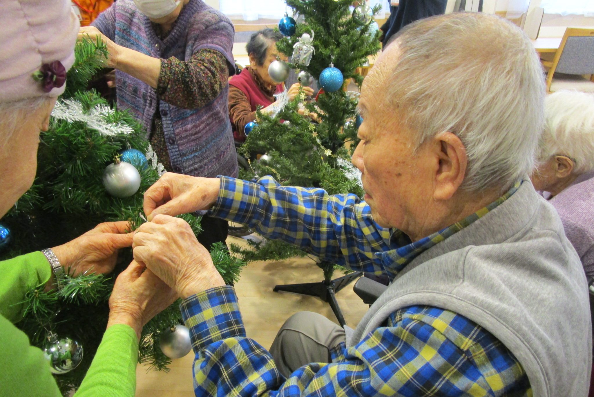 アルファリビング岡山駅西のクリスマスツリーを初めて見る私は少し戸惑いもありましたが、ご入居者同士で話をしながら、声を掛け合い、工夫を凝らし飾りつけをすることで、だんだんときれいに飾りつけられていくクリスマスツリーを見て、ご入居者と一緒に楽しむことができました。