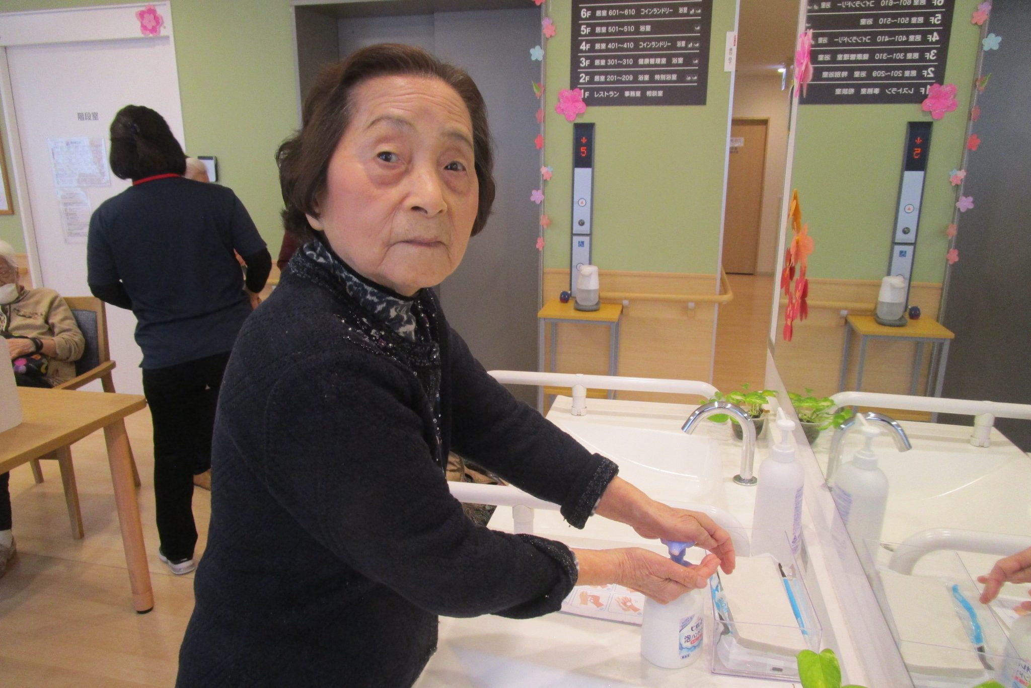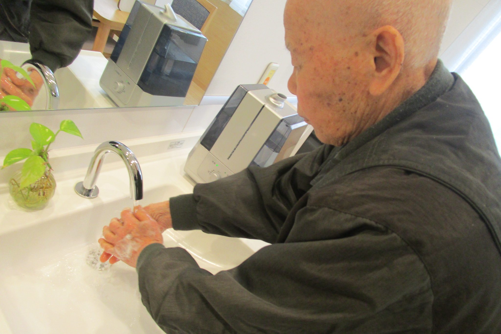 まだまだ新型コロナウイルスの猛威に心が休まらない日々を送っていますが、コロナウイルスに負けないようにと、感染委員会の発案でご入居者向けに手洗い講習会を実施しました。