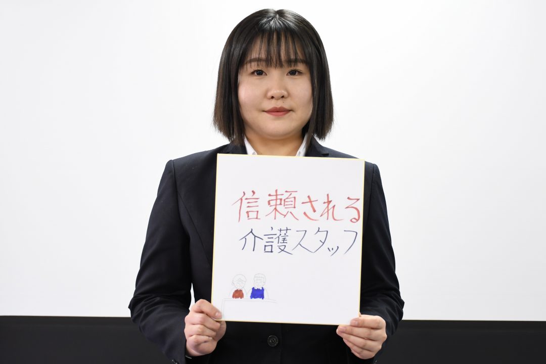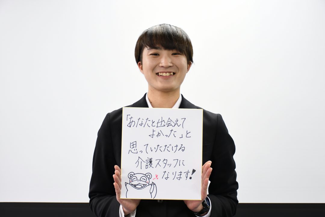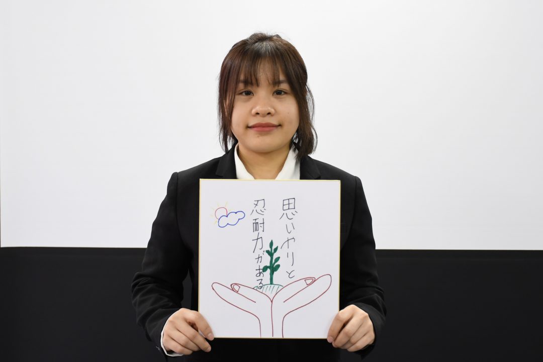 以下は、あなぶきメディカルケアで働く決意をしたためた色紙を持った新入社員の皆さんです。