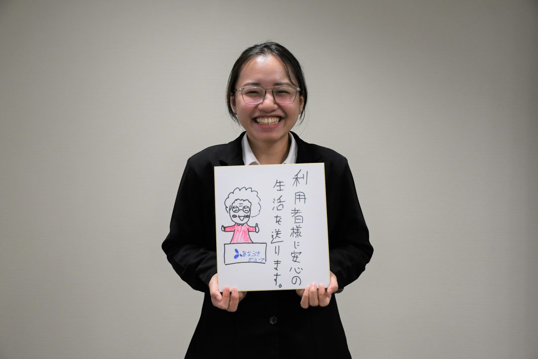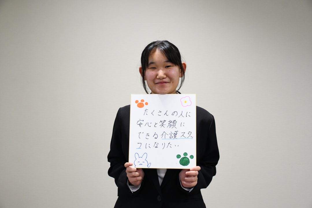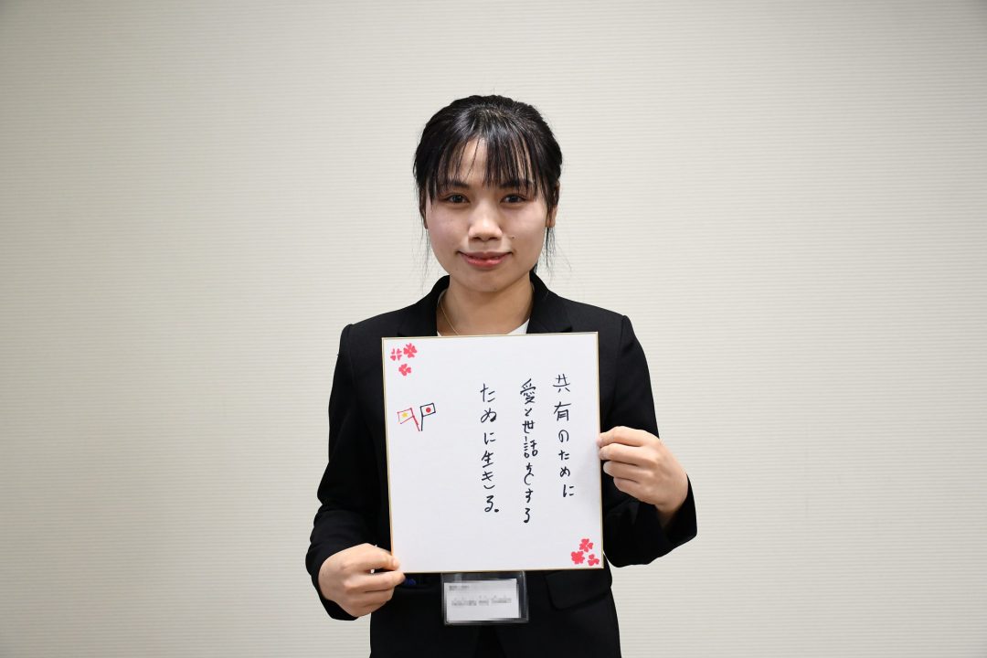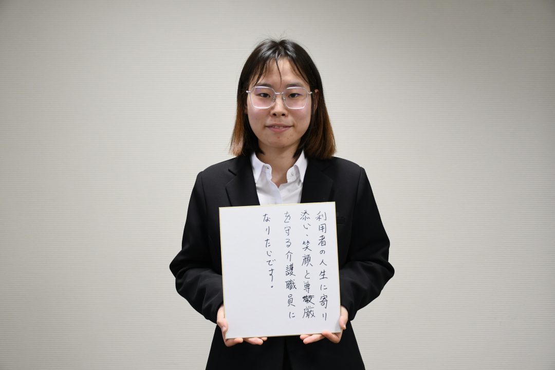 以下は、あなぶきメディカルケアで働く決意をしたためた色紙を持った新入社員の皆さんです。