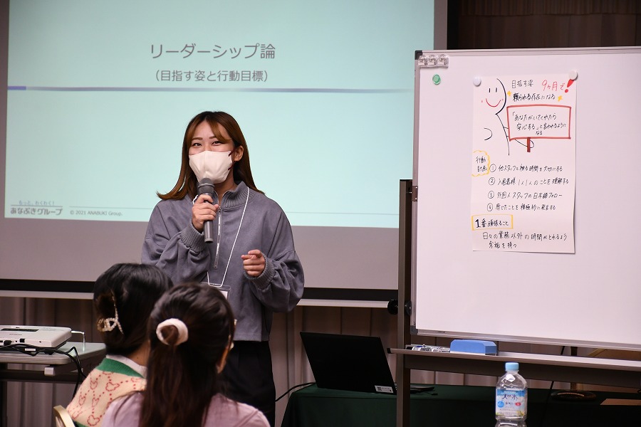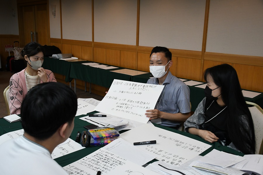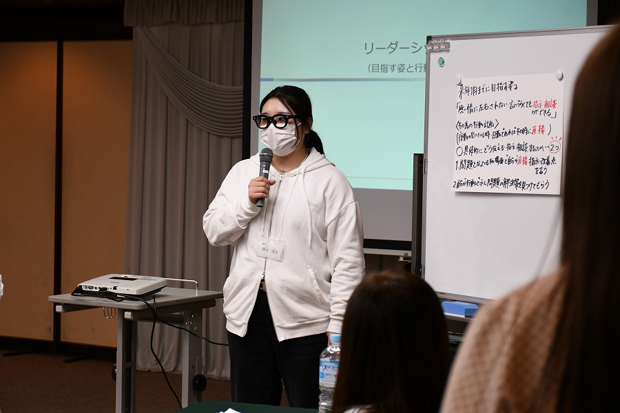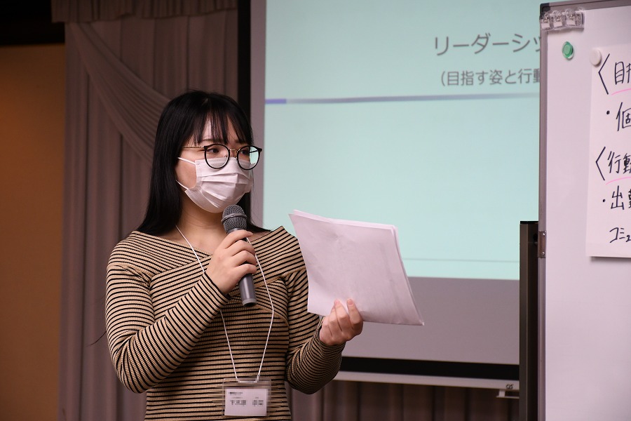 プログラムでは、「リーダー像と必要な力」をみんなで考え、自身の現状を振り返り、目標とするの姿や行動目標を設定する実践的なワークを行いました。