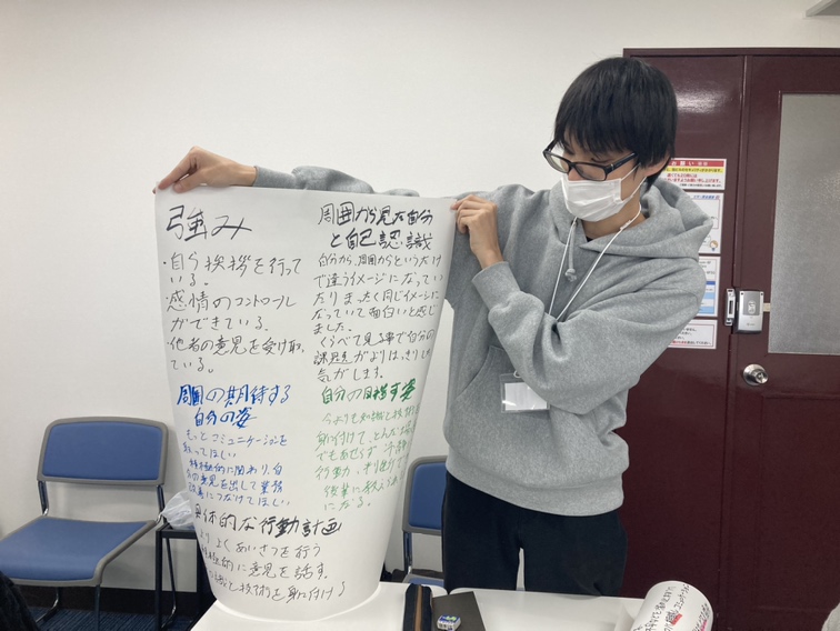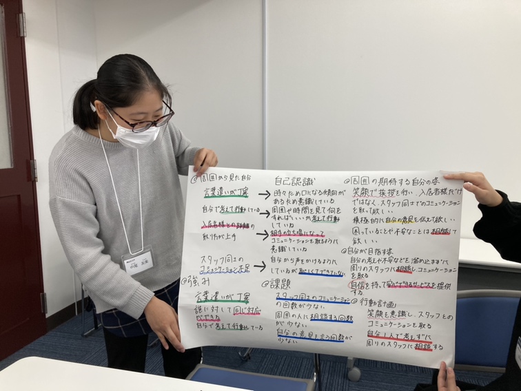 先輩スタッフからのフィードバックをみて、自分の言葉でアウトプットし発表することで自分の目標が明確になり、具体的に整理できたのではないでしょうか。