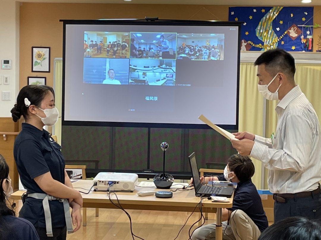 福岡3施設と本社をオンラインでつなぎ、前年度の振り返りと今年度目指す事を全スタッフで再確認!