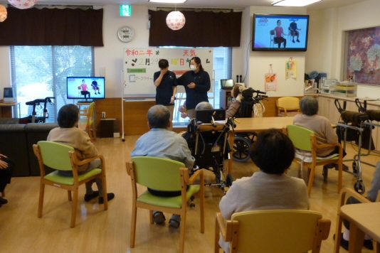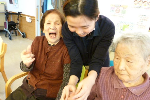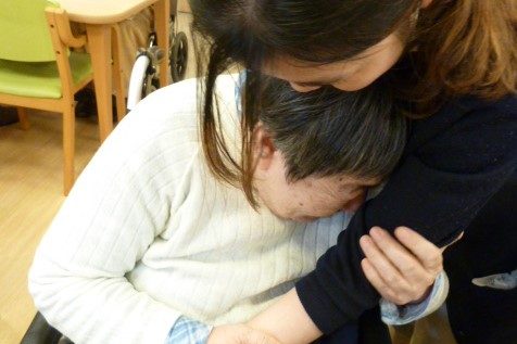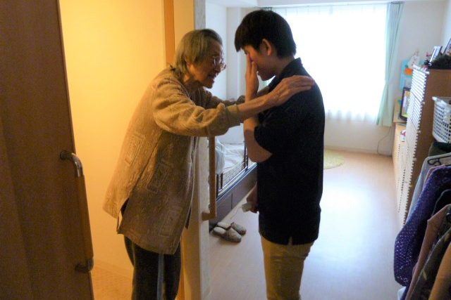 当ホームでの仕事が最後の日、彼女たちがお客さまにお別れの挨拶をしました。