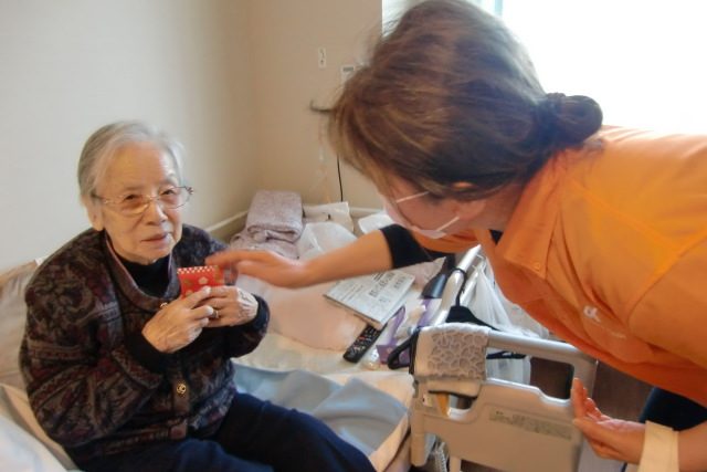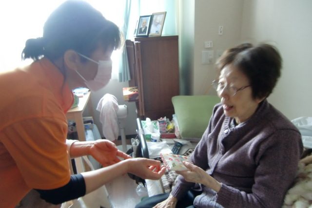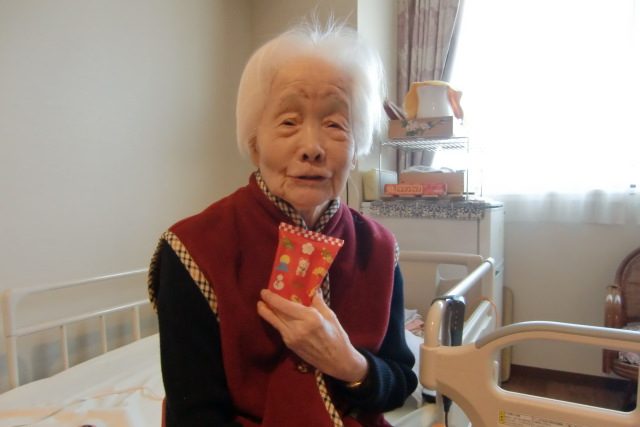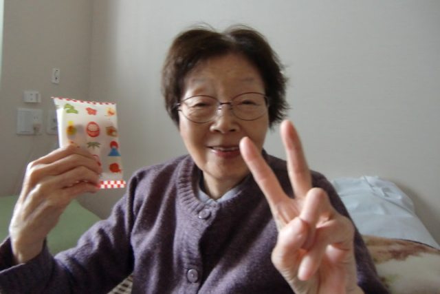 アルファリビング広島古江駅前では、お正月にスタッフがご入居者の居室を一部屋一部屋訪問して、新年のご挨拶周りとお年玉(お菓子)を配りました。