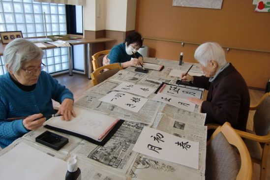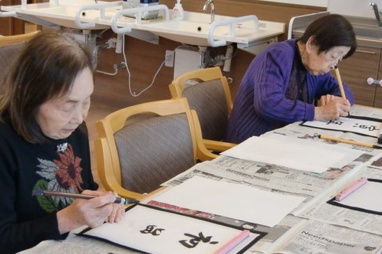 アルファリビング広島古江駅前では、少しでも楽しんでいただくために、感染予防を実施した上で書初めを実施しました。