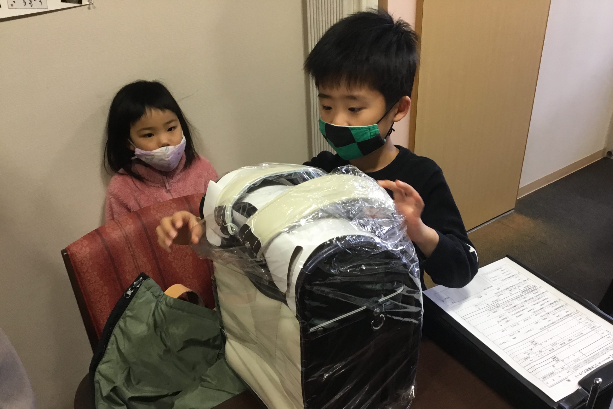 初めてお母さんが働く職場に来て少々緊張した様子ながら、「いっぱい、勉強せないかんね」などなど質問攻撃に「うん」と可愛くうなずいてくれました。
