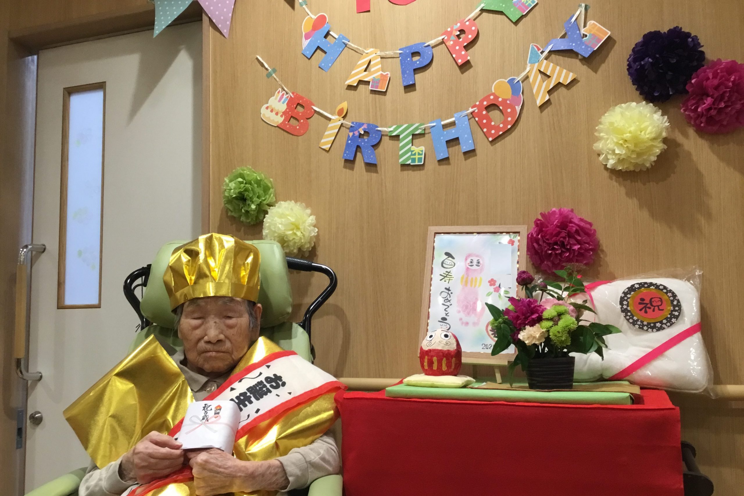 普段は静かに休まれていることが多いのですが、この日はご入居者やスタッフからの「おめでとう」の言葉に「ありがとう」と大変喜んでいただきました。