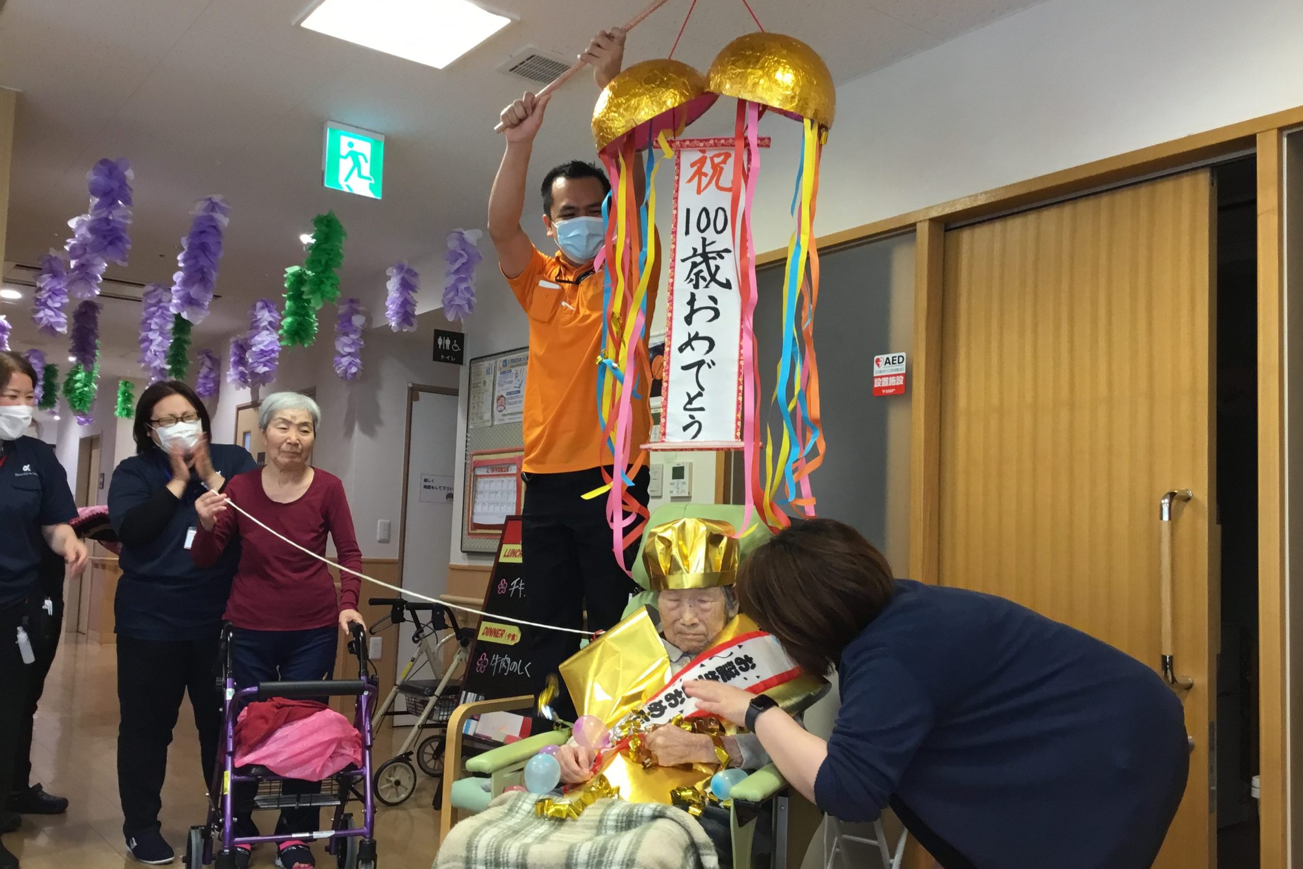 ご入居者もほっこりと笑顔になるお祝いができ、「人生100年!ご入居者と100歳まで頑張ろう」と誓いました。