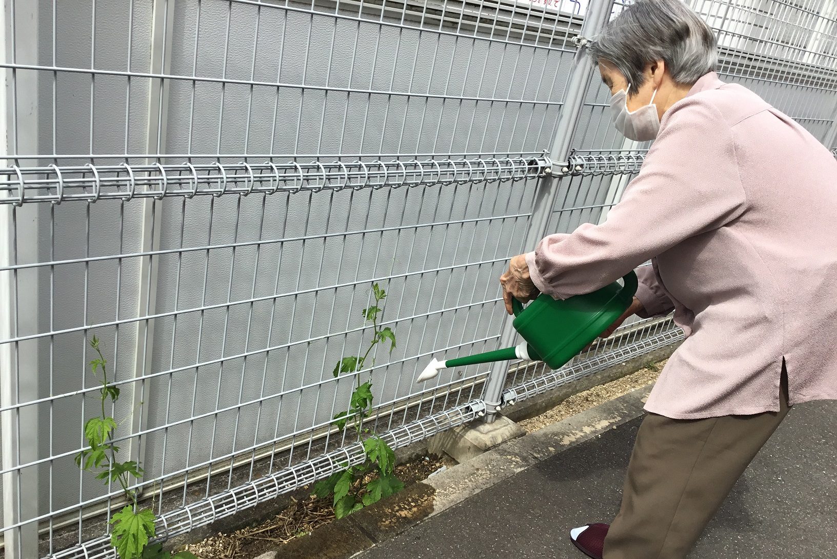 ゴーヤにはご入居者が水やりをしてくださり、たくましくすくすくと成長しています。