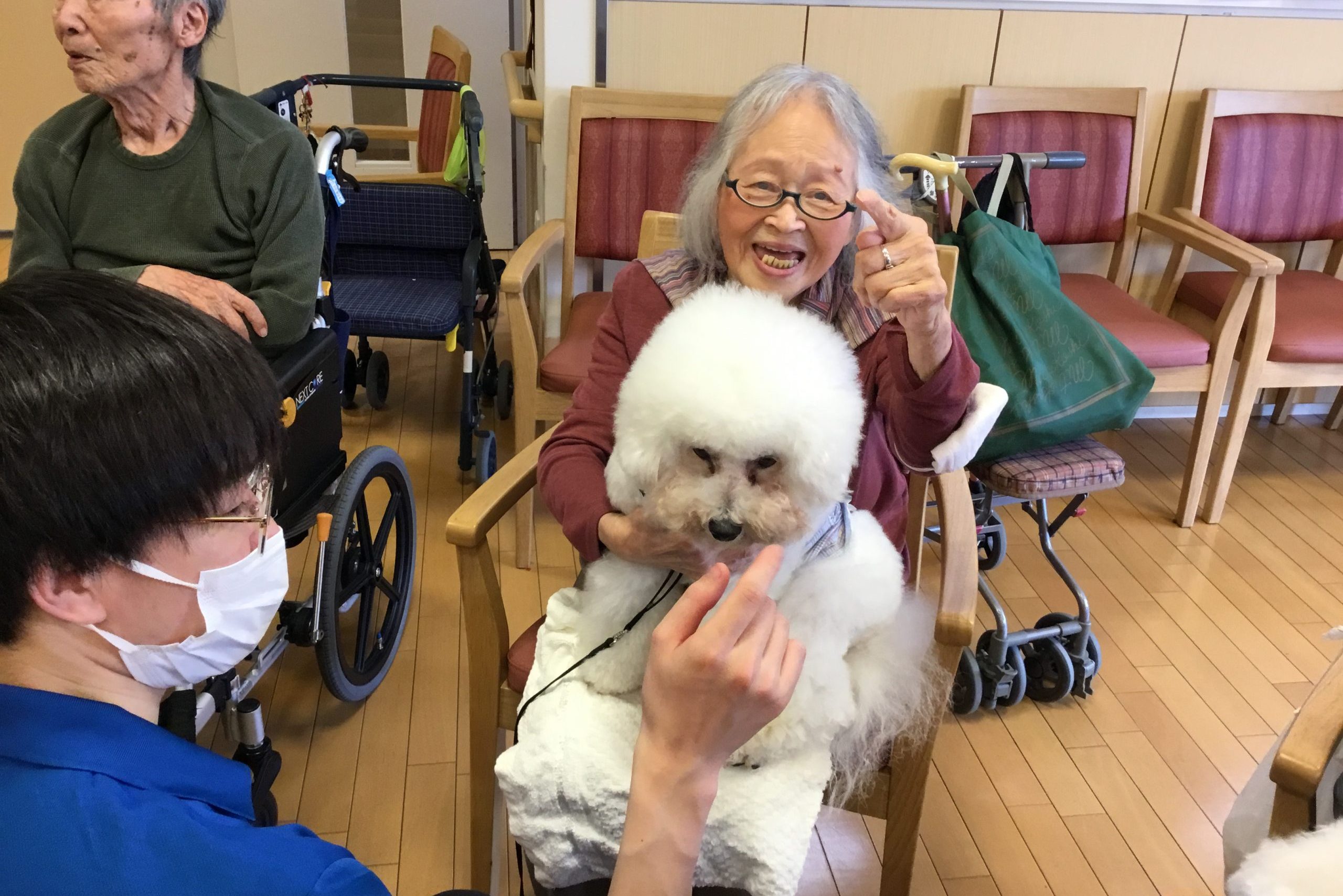 時にはドッグセラピーの慰問もあり、昔ワンちゃんを飼われていた方は抱っこして喜ばれます。
