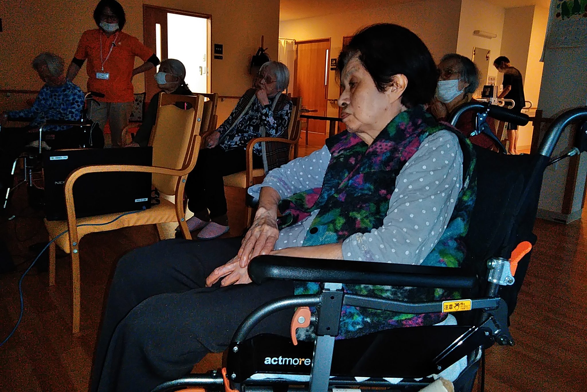 生の演奏とは少し違いはありますが、力強い太鼓の音にご入居者の皆さまも大変喜ばれていました。