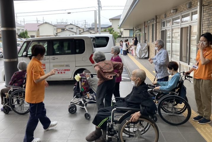デイサービス側ではご入居者を外まで避難誘導しました。