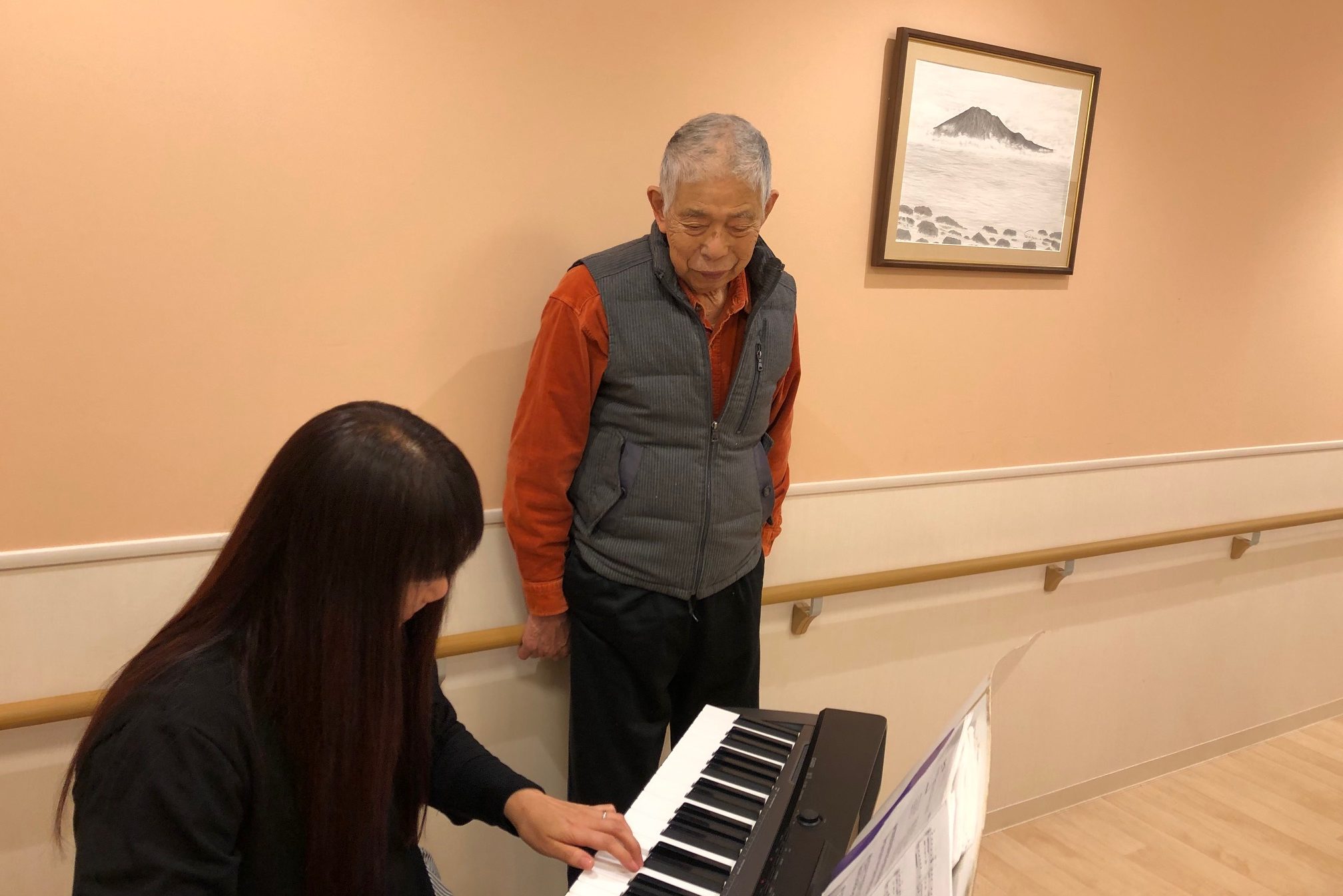 クリスマス会の生演奏後は、先生のところに駆け寄り、生演奏で気持ちよさそうに歌われました。