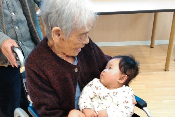 ご入居者が抱っこしているのは、なんと玄孫ちゃん。4世代に渡って今回の忘年会に参加してくださいました。