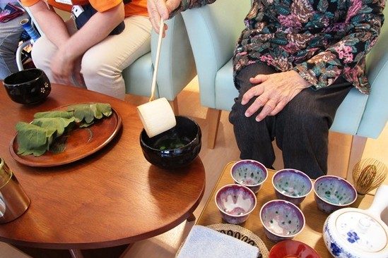 主催者は、元々お茶の先生をされていたIさまですが、「私がお茶碗洗うわね」「お湯を沸かしとくからね」とご入居者同士でいつの間にか役割分担をされています。
