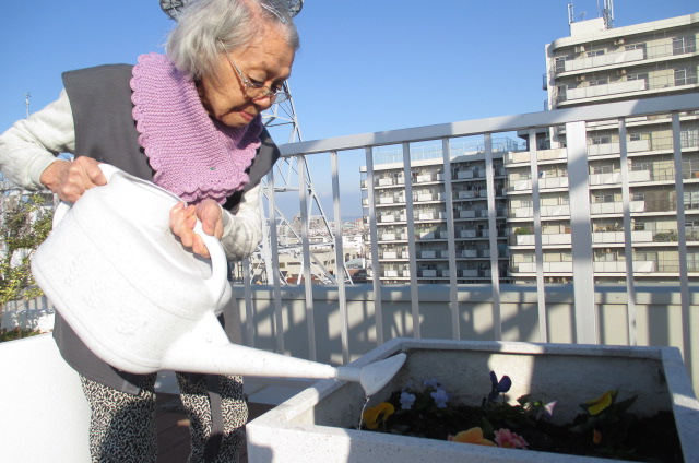 感染拡大防止のため外出が制限されている中、ご入居者のストレス軽減や気分転換を図りたいという思いから、屋上のガーデニングを一緒に行うことにしました。