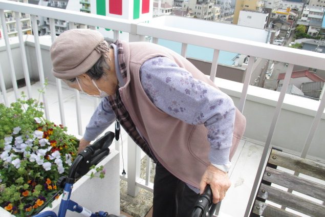 当ホームには屋上があるのでご入居者とお花を植え、育てています。