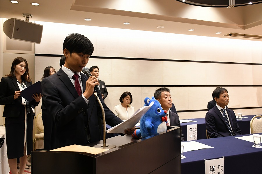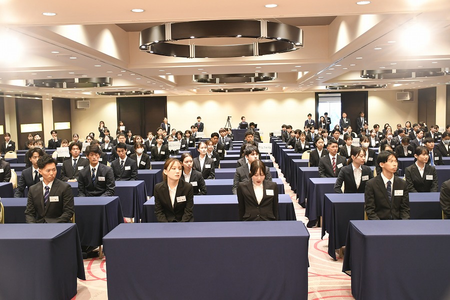 10月1日に、2025年4月入社予定の学生を対象としたあなぶきグループ合同内定式が高松国際ホテルで開催されました。あなぶきグループ全体の内定者は127名で、当社からは18名の内定者が参加しました。