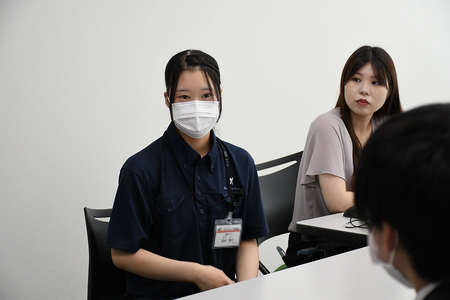 入社するまでの不安な気持ちや入社してから思ったことなど、リアルな声を話してもらいました。入社してからはとにかく覚えることがたくさんあって大変だったそうですが、半年経った今では少しずつやりがいも感じているそうです。