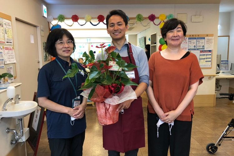 オープン当初から当ホームを支えてきた、アルファリビング高松紺屋町 施設長のまなべさん、ケアマネジャーのよしださん、そしてケアマネジャーのにしおかさんもかけつけてくれました。
