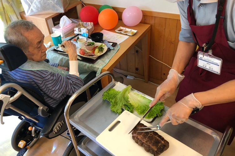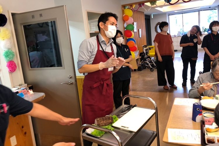 給食委託会社あなぶきエンタープライズやまぢさんの豪華な手料理でおもてなしをすると、ご入居者から