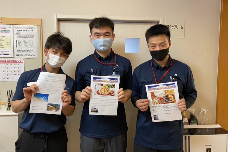 出身地である中国、フィリピン、ベトナムの、各々が紹介したい観光地や美味しい料理等にスポットを充て、慣れない日本語を検索しながら作成しました。