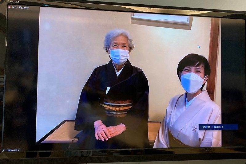 また、食事中にも女将、大女将からオンラインで和三盆糖作り実演や二蝶内散策があり、視覚でも楽しまれていました。