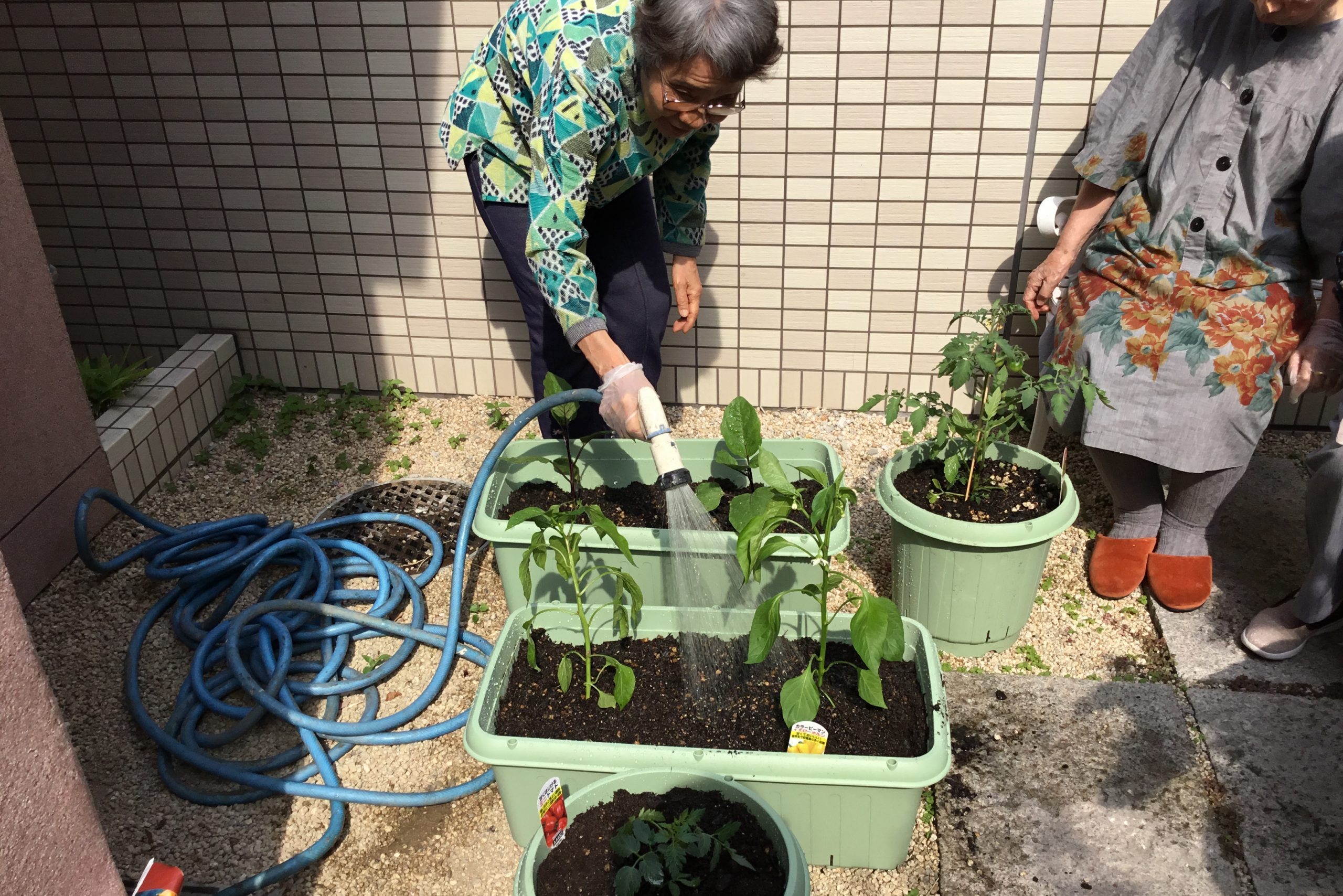 これから夏本番、トマトやピーマンが収穫できるのをご入居者は楽しみにされています。