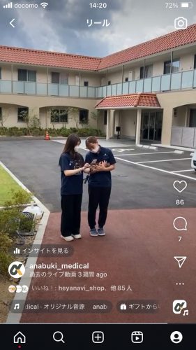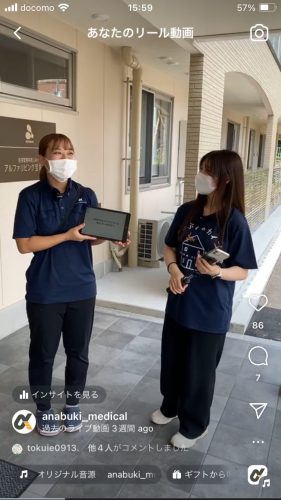 「新しいきれいな施設内をライブでお見せできたら…」と思ったのですが、施設内は携帯電話の電波が弱く、急遽、施設の外からライブ配信!