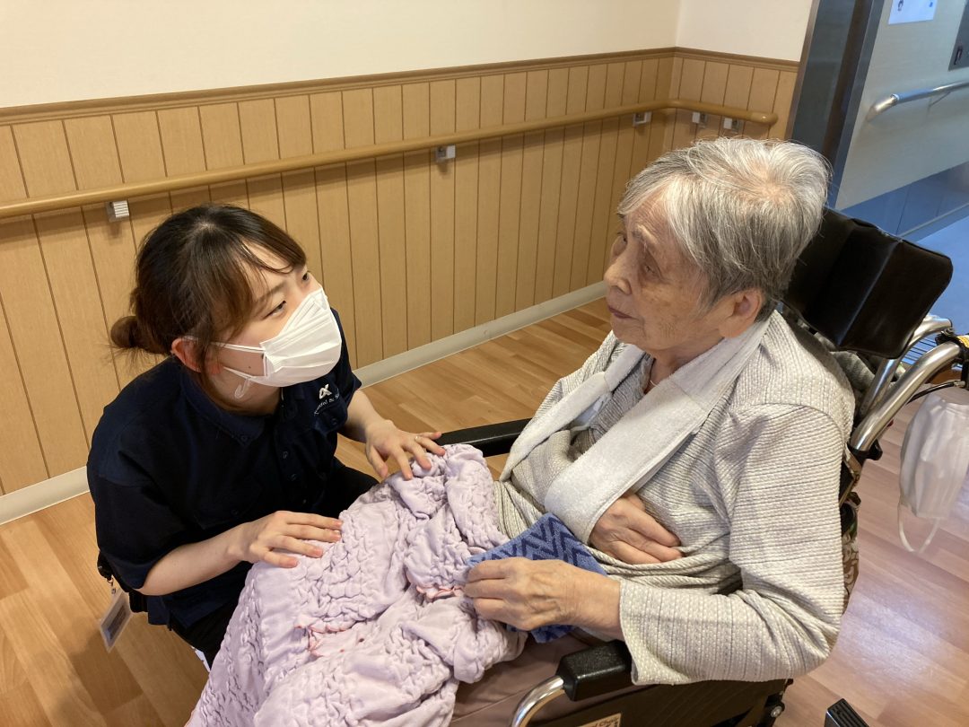専門学校時代に、特養や老健で実習を経験しましたが、何となく自分に合わないな…と感じました。就職活動で、あなぶきメディカルケアへ見学に行きました。「私らしさを支えたい」という理念に惹かれましたし、1対1でしっかりと向き合える介護にも魅力を感じました。専門学校の同級生は特養や老健に就職する中で、私はサ高住を選びました。サ高住だと特養で働くより介護技術が磨けないのではないか…という焦りはありましたが、逆に、あなぶきメディカルケアでは、自立されている方から介護度の高い方まで幅広く関わることができるので、自分のスキルも自然と広がっていく感覚があり後悔していません。