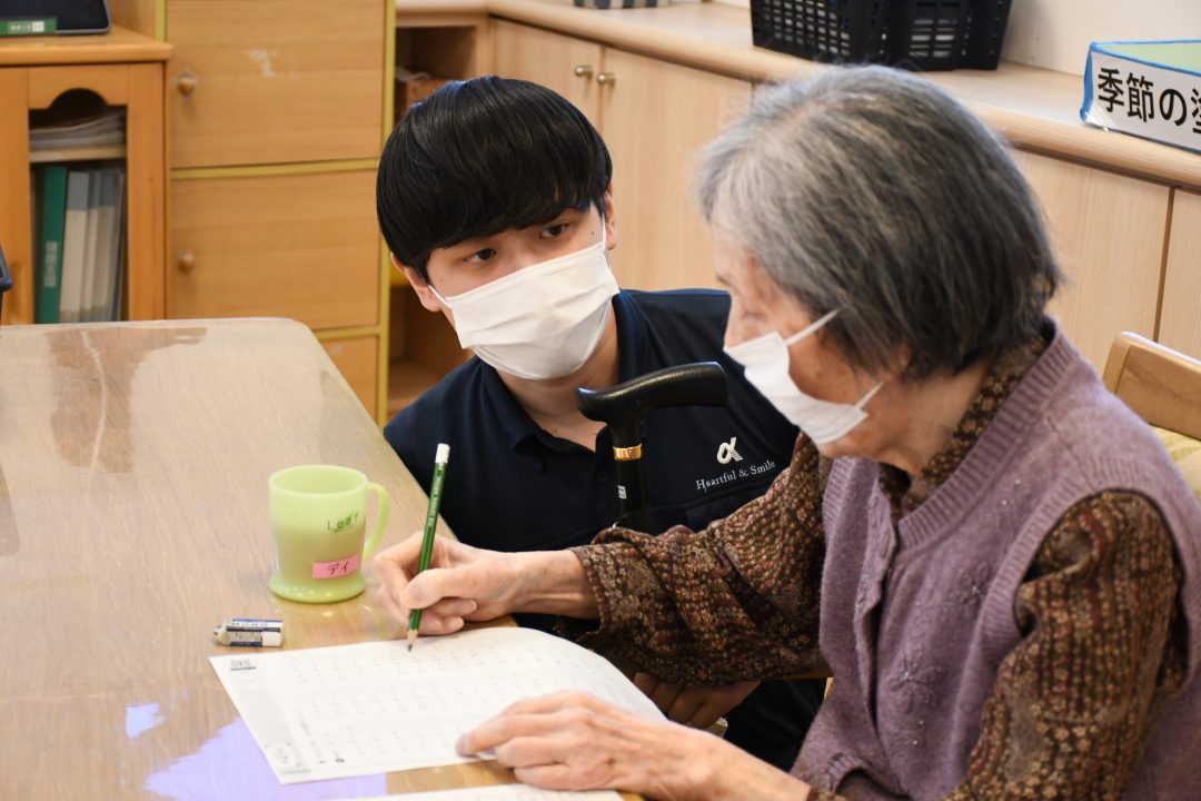 今回お話を聞いたのは、アルファリビング福山多治米でデイサービス管理者を務めるはしもとさん。2022年に新卒で入社し、2026年2月に管理者に抜擢されました。