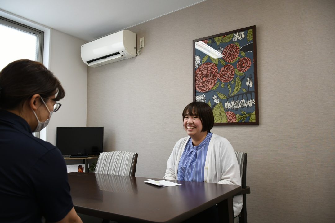 福祉系の大学を卒業してデイサービスに就職し、相談員として働く。その後、障がい者の訪問介護事業所でサービス提供責任者(以下サ責)を経験。2015年にあなぶきメディカルケアにサ責として入社し、2019年にアルファリビング岡山駅西の施設長に就任。産休・育休を経て2023年5月から9時~16時までの時短で施設長として働いている。