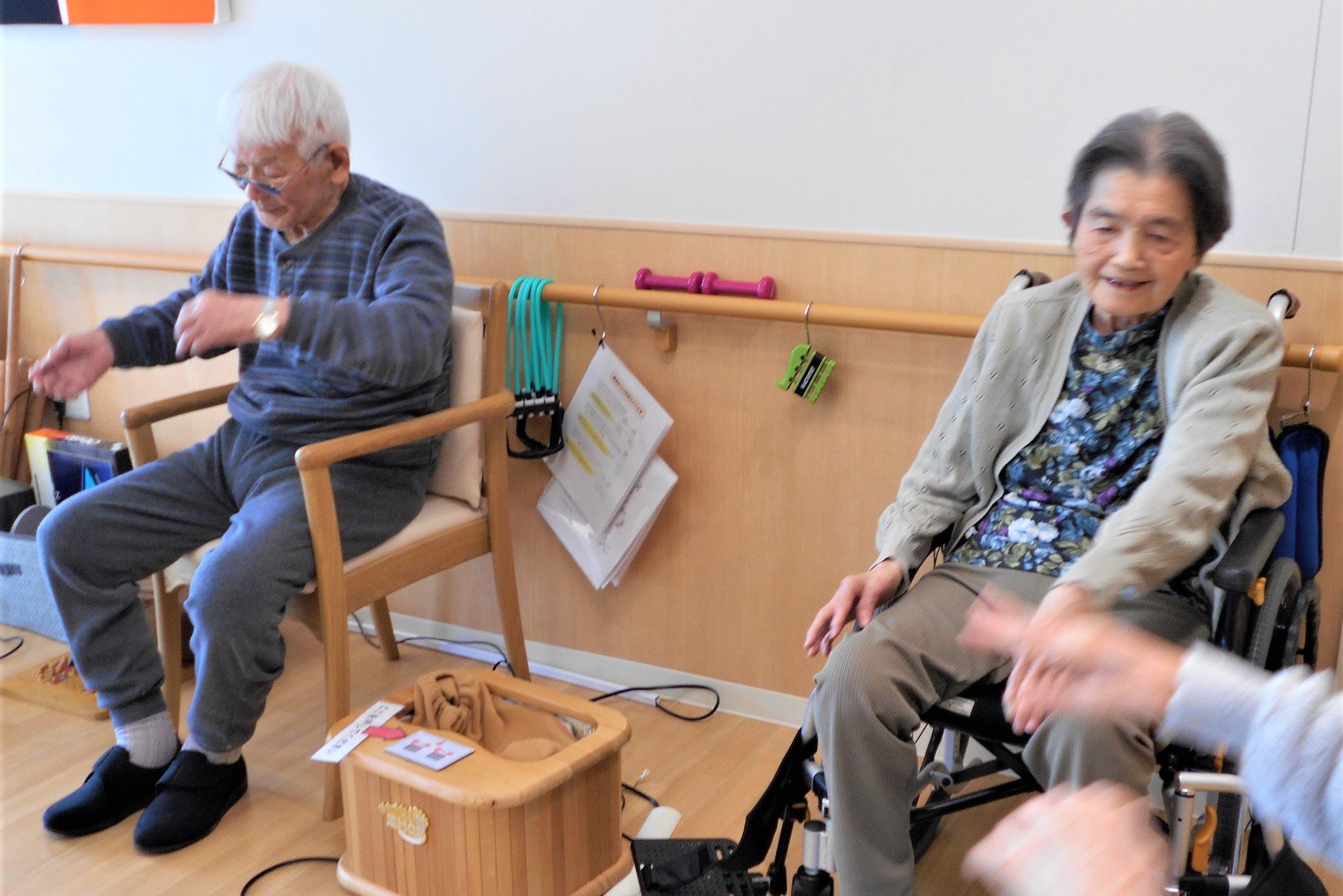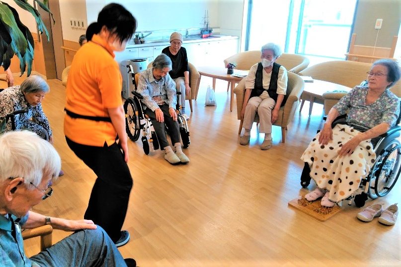 様々な疾病でご自身ではできない方は、スタッフが日頃から意識して、運動する機会を設けるようにしています。