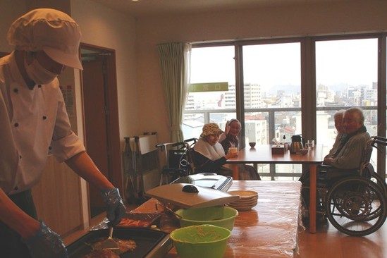 その中の一つ食事委員会は、給食委託会社の魚国総本店と月に一回会議を行い、イベント食、季節食の打ち合わせやご入居者からの意見をお伝えするなど、意見交換を行っています。