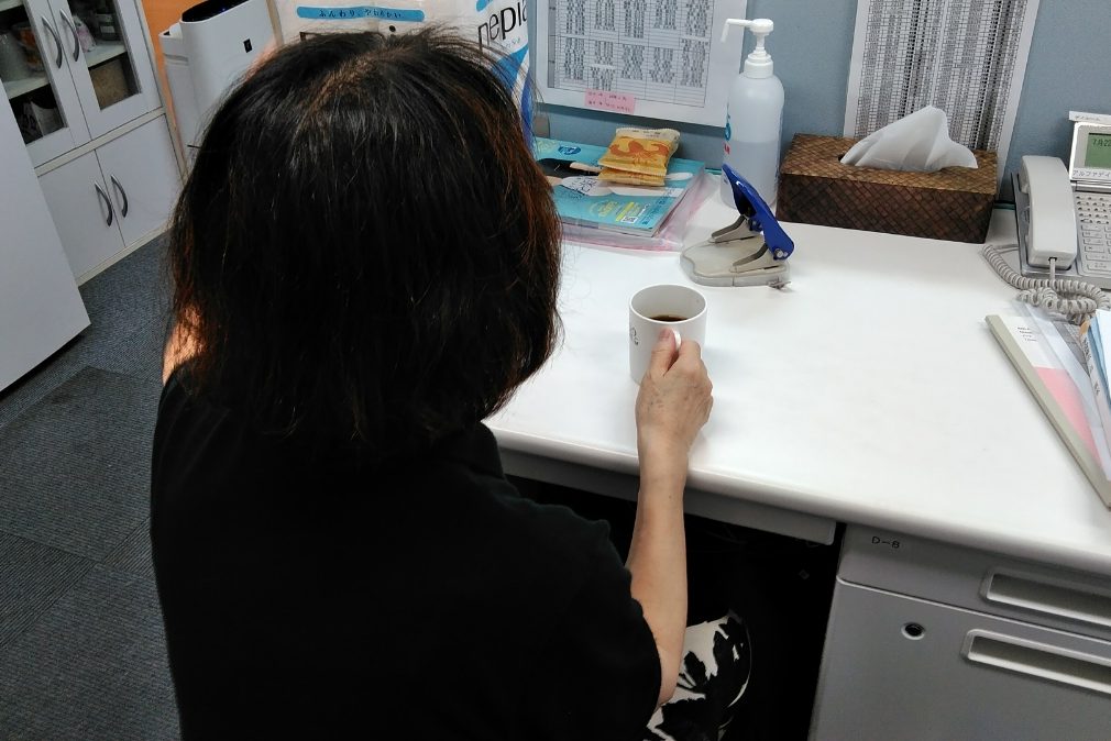 数分でも、数秒でも、少しでもスタッフと話すことで気分転換になったり、寂しい気持ちが明るい気持ちに変わり笑顔が引き出せ、ご入居者にとって事務所で過ごす時間が『ほっ』とできる時間になればと思います。