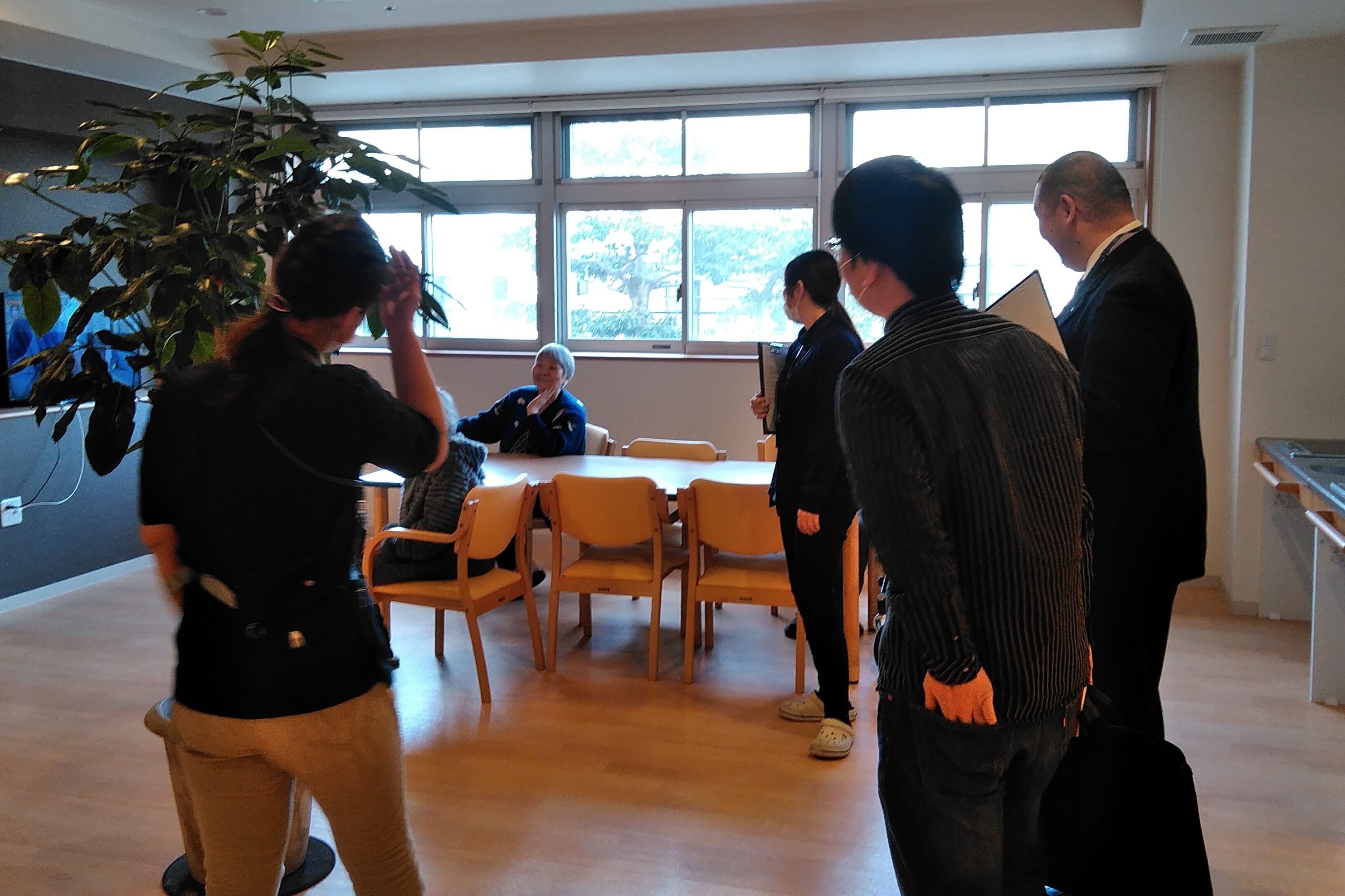 ゲーム感覚で認知症の世界に少し触れていただき、緊張も和らいだところで見学開始です。