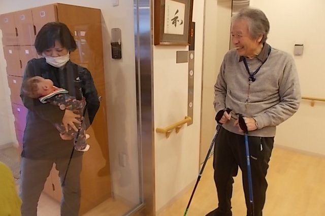 育休期間中にはこうやってホームに遊びに来てくれ、ご入居者、スタッフが一つの家族のように喜んでいます。