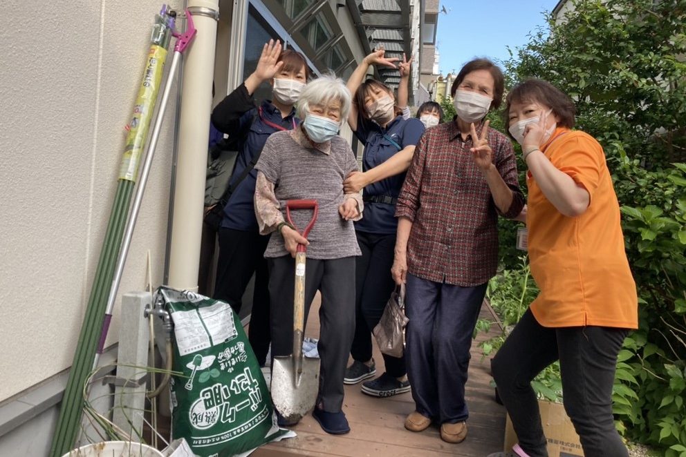 梅雨時期なので、植えられる植物は限られましたが、ご入居者と共に作業をしていると、ご入居者の表情は花が咲いたように、生き生きとした笑顔でした。