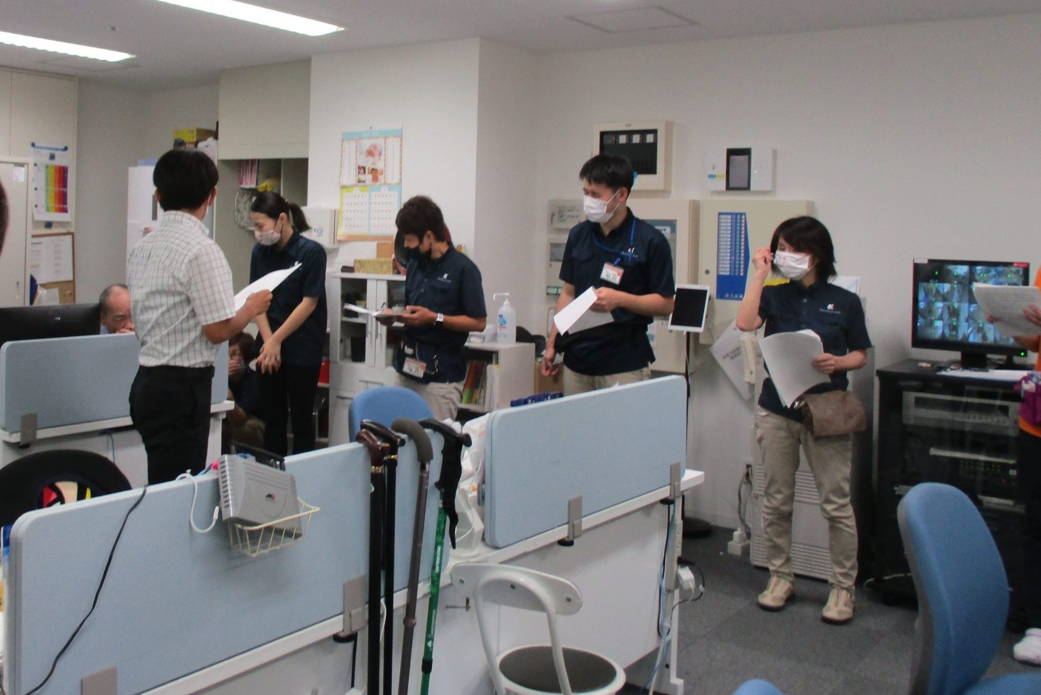 訓練および訓練後に火事と災害時対応の研修を実施しました。