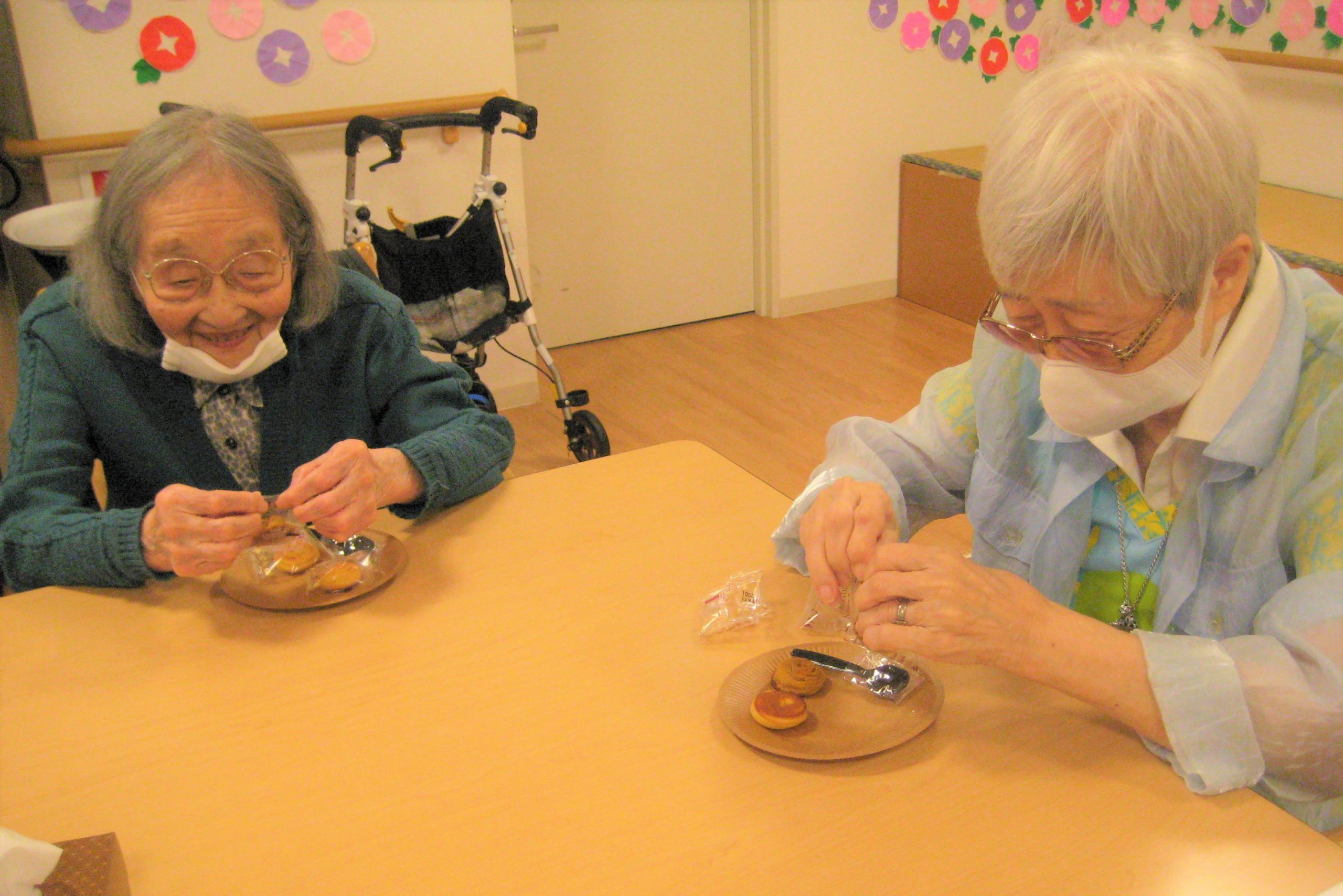 以前からご利用者から「アイスが食べたい」という声があり、ご要望にお応えするため、今回はおやつレクリエーションを初めて開催しました。