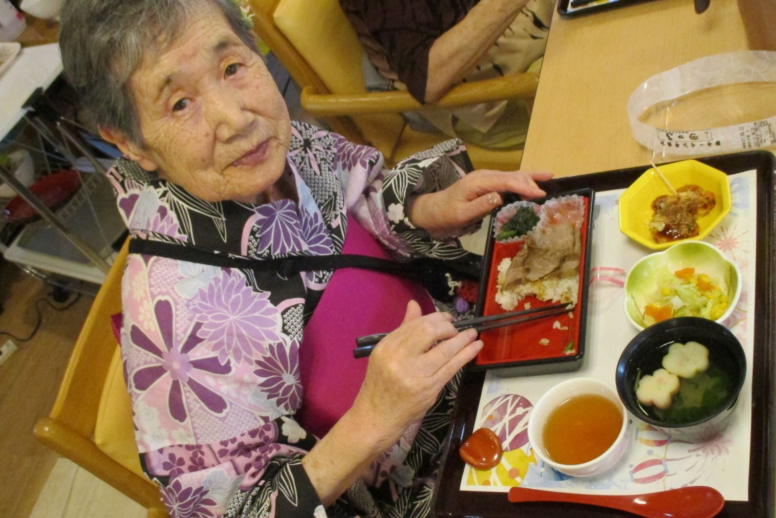 今年は盛大には出来ませんが、レストランを提灯や夏の風物詩で飾ったり、お食事をいつもより豪華なステーキ弁当にしました。