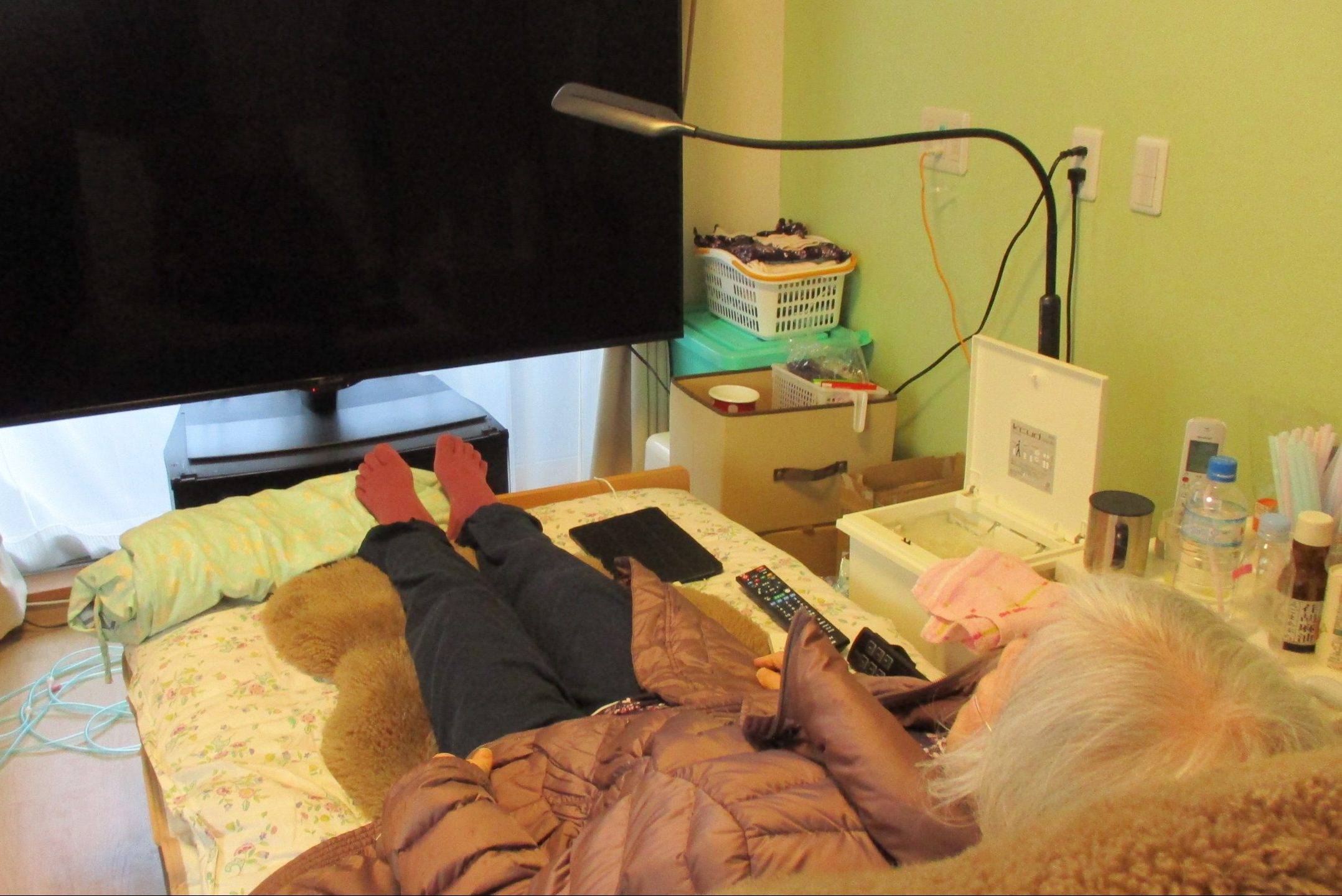 ご趣味は海外ドラマ、ゲーム、ネットショッピングだそうで「海外ドラマは若い時からずっと見ているの、ゲームはタブレットでソリティアをしているの。私が動ければいいのだけど、動けないから家電とかネットショッピングで買っています。」とお話くださいます。